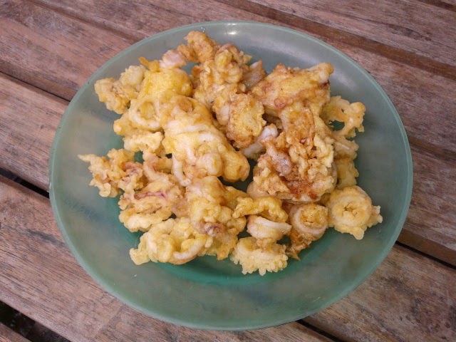 - Mulai menggoreng. Cumi dicelupkan ke telur yang udah dikocok tadi terus diguling-gulingkan ke tepung, setelah itu masukkan deh ke wajan.