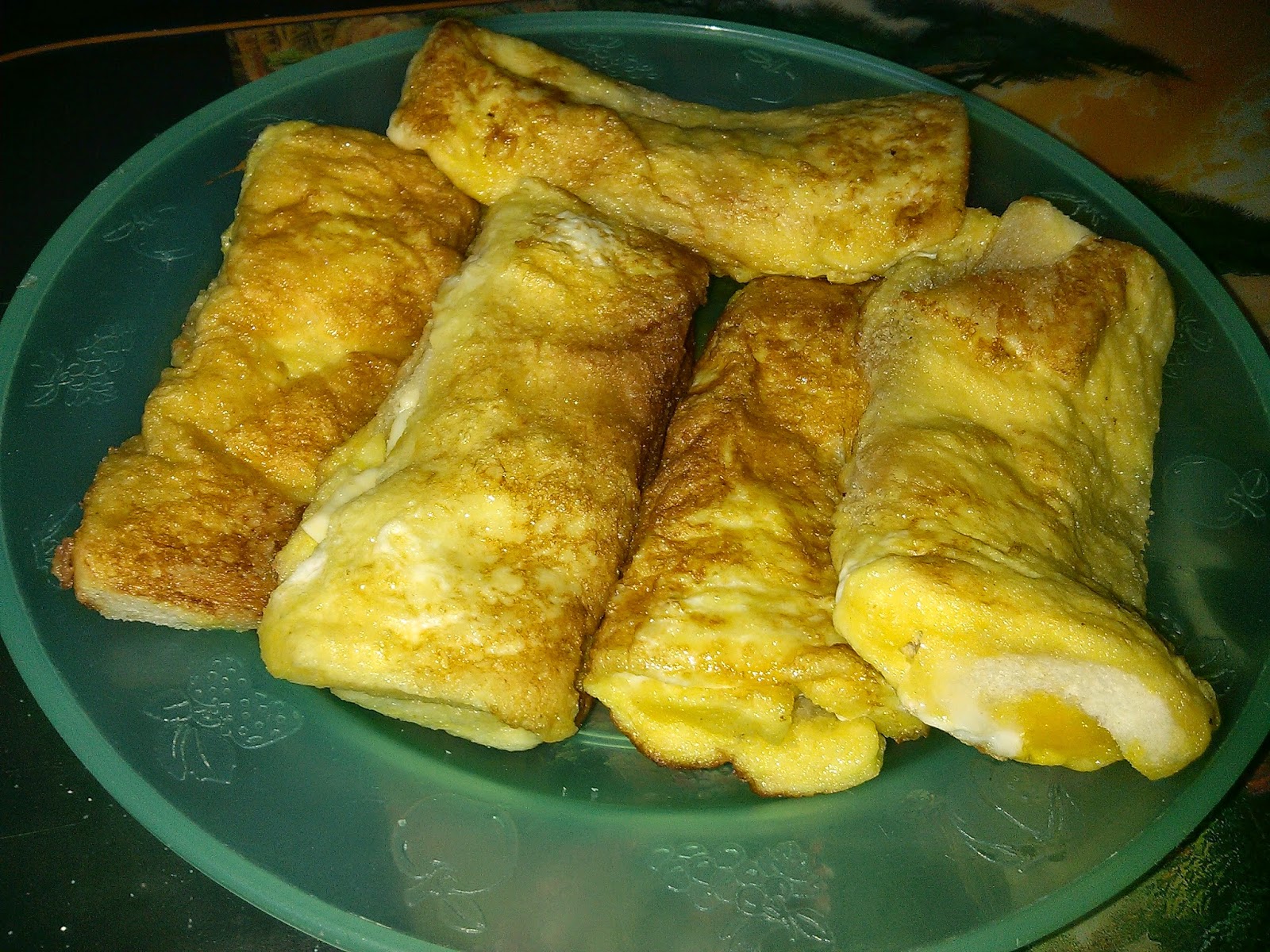 - Celupkan roti tawar yang udah digulung dalam kocokan telur.